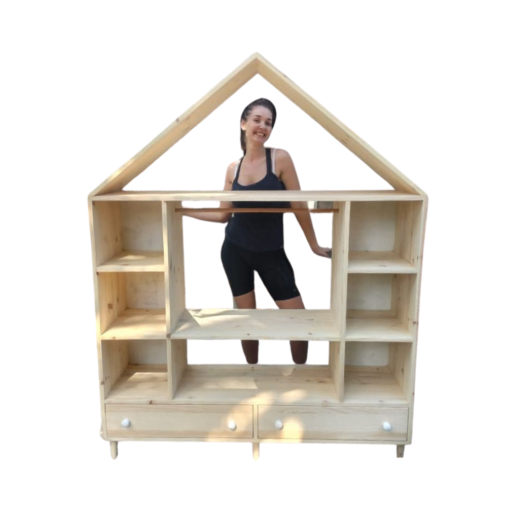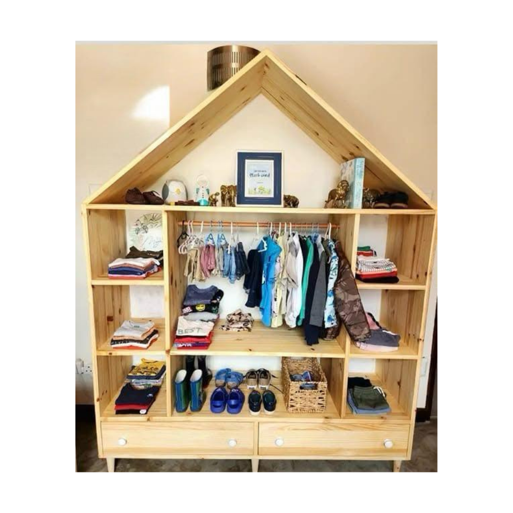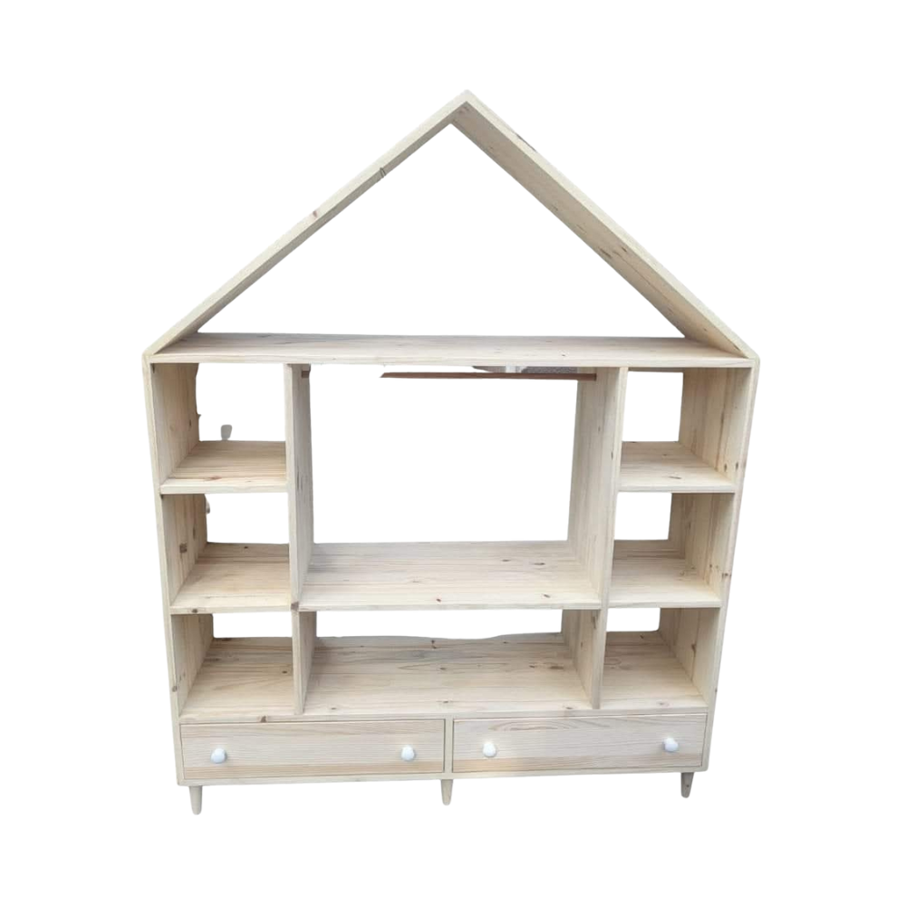 Raw Pine wood open house cupboard shelve with bottom drawer