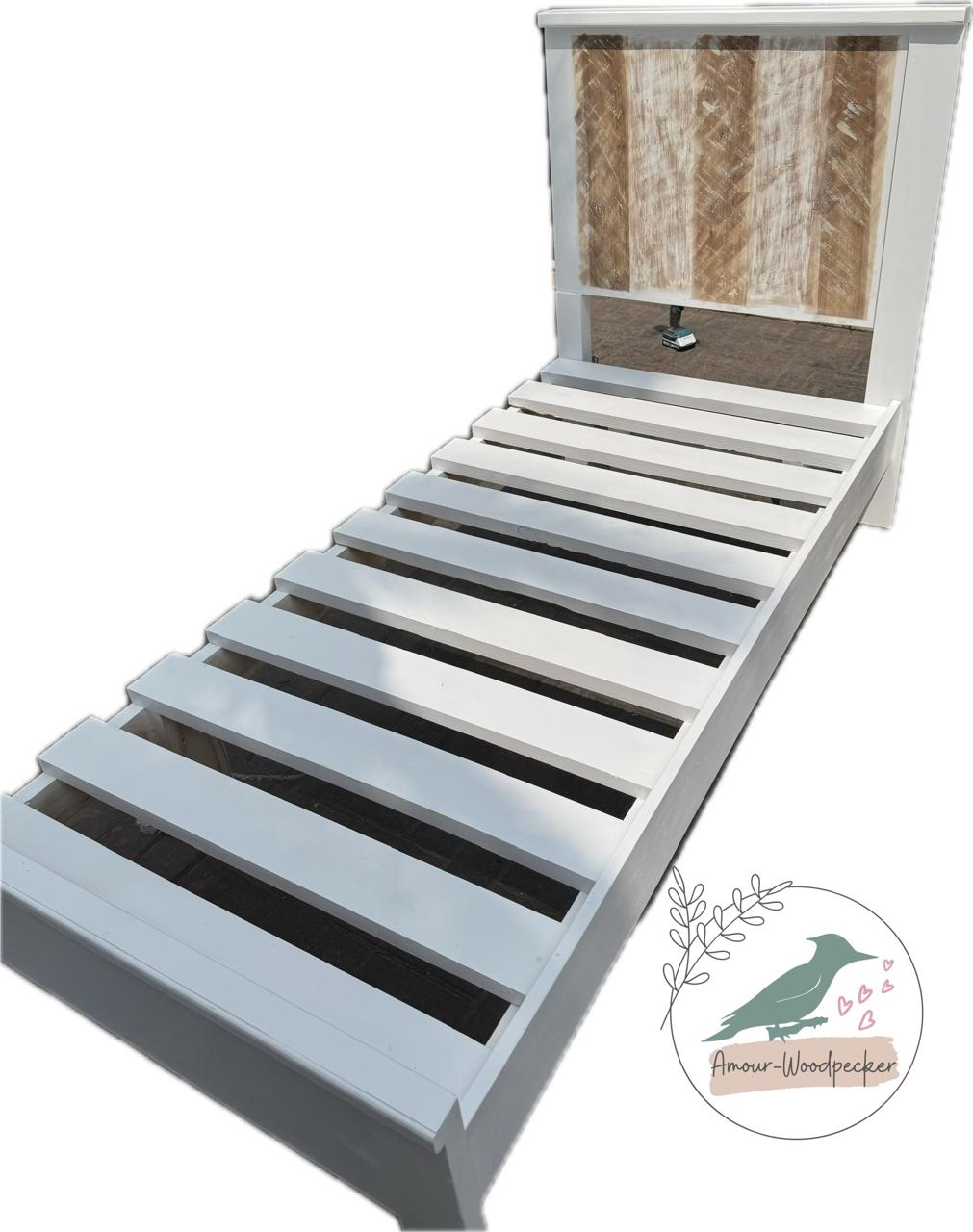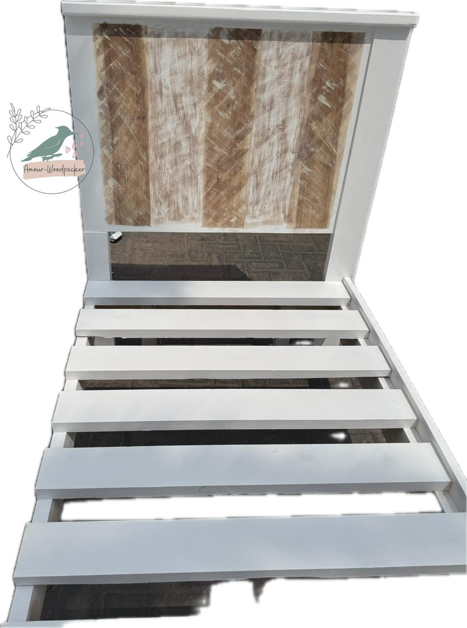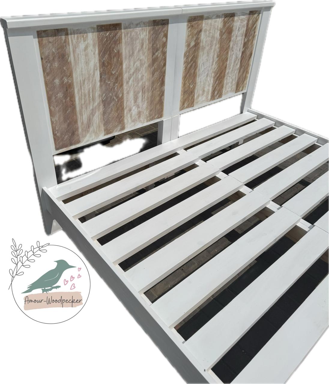 Combination of Pine and Acacia timber, white washed and stained headboard